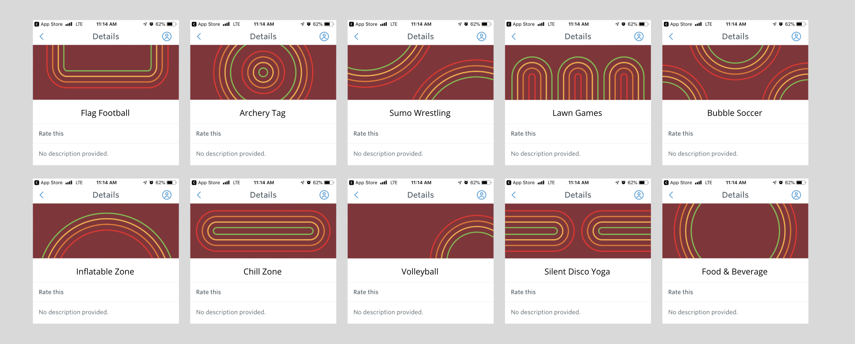 After swag, I designed all the assets for the app that would be used for activity signups and navigation leading up to and during Field Day.