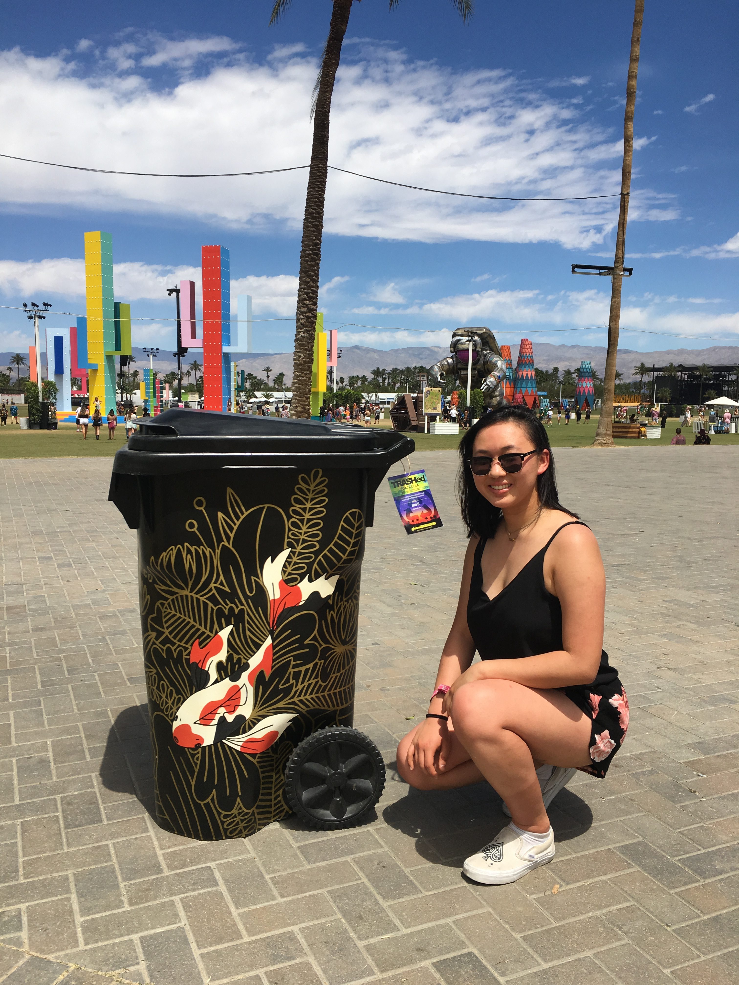 TRASHed Coachella is an art competition that Global Inheritance, a non-profit organization inspiring action on global issues, puts on every year with the Coachella Valley Music and Arts Festival. For the competition, artists submit designs to be put onto 65 gallon recycling bins that will be put on display at the music festival to remind attendees to rethink their trash and start recycling (see examples).